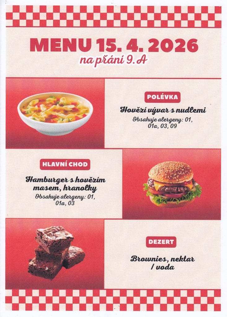 Dnes jsme začali s třídou 9.A, která si zvolila své oblíbené pokrmy a sestavila z nich celé menu.